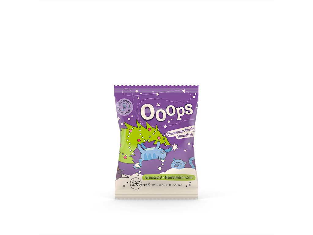 Uhličitá koupel Ooops (s vůní granátového jablka, mandlového mléka a skořice) 35g